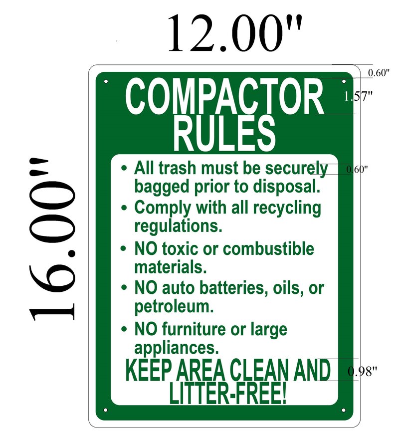 Compactor Rules Sign 16x12 Hpd Signs The Official Store