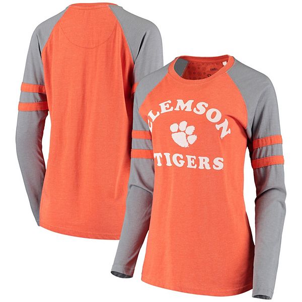 Women S Pressbox Heathered Orange Gray Clemson Tigers Piper Vintage Washed Raglan Long Sleeve Jersey T Shirt