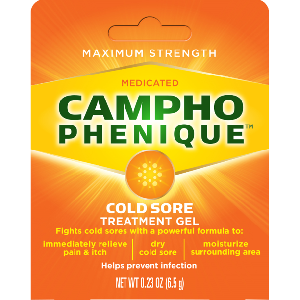 Amazon Com Campho Phenique Cold Sore Treatment Maximum Strength Original Gel Formula Orange No Flavour 0 23 Oz Health Personal Care