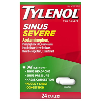 Tylenol Pain Reliever Fever Reducer Caplets Sinus Congestion Severe Pain Daytime 24 Count Albertsons